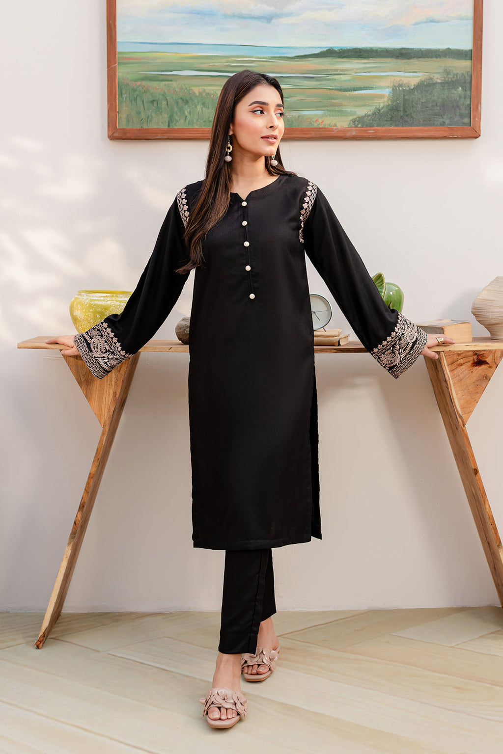 Description: Embroidered Shirt and Plain Trouser .