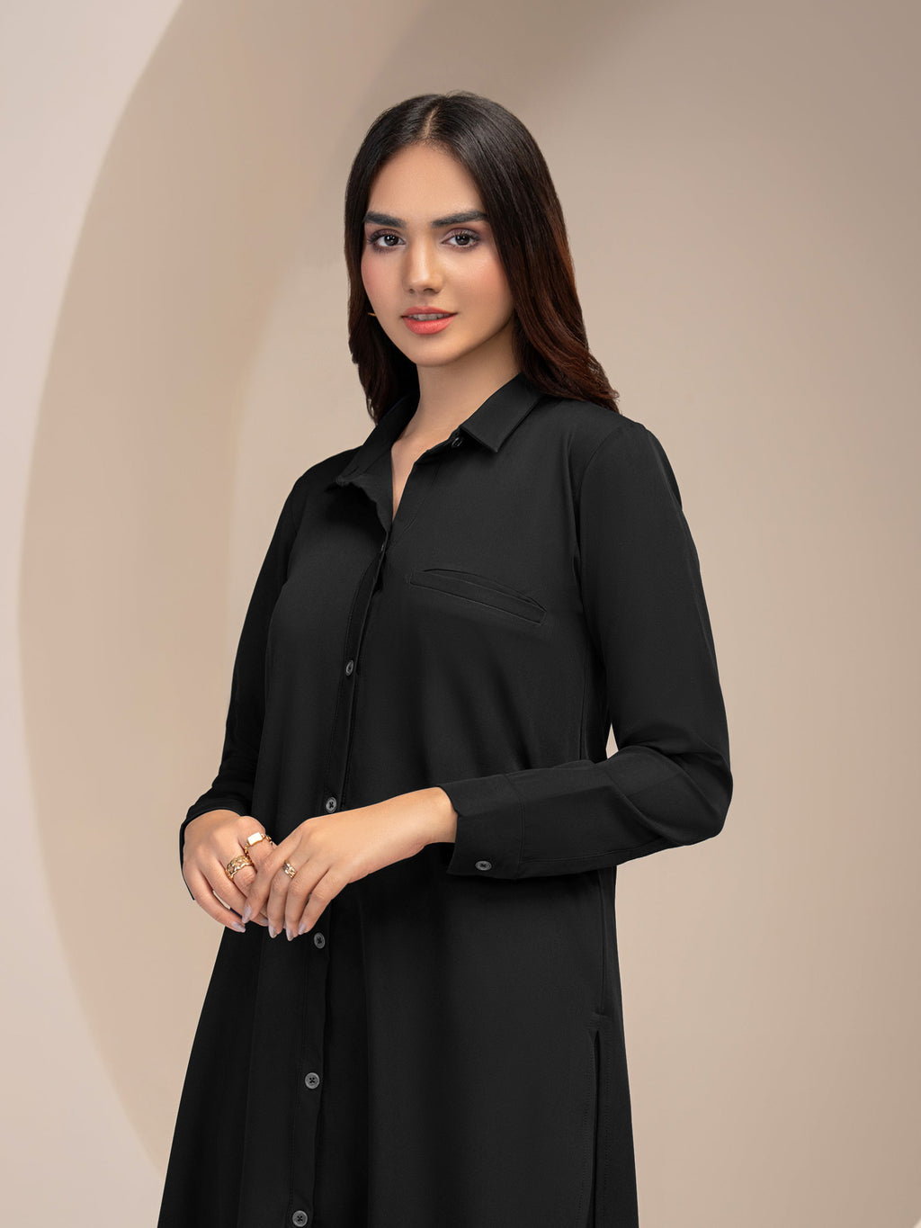 Dyed shirt with button detailing on the placket and slit on the cuffs