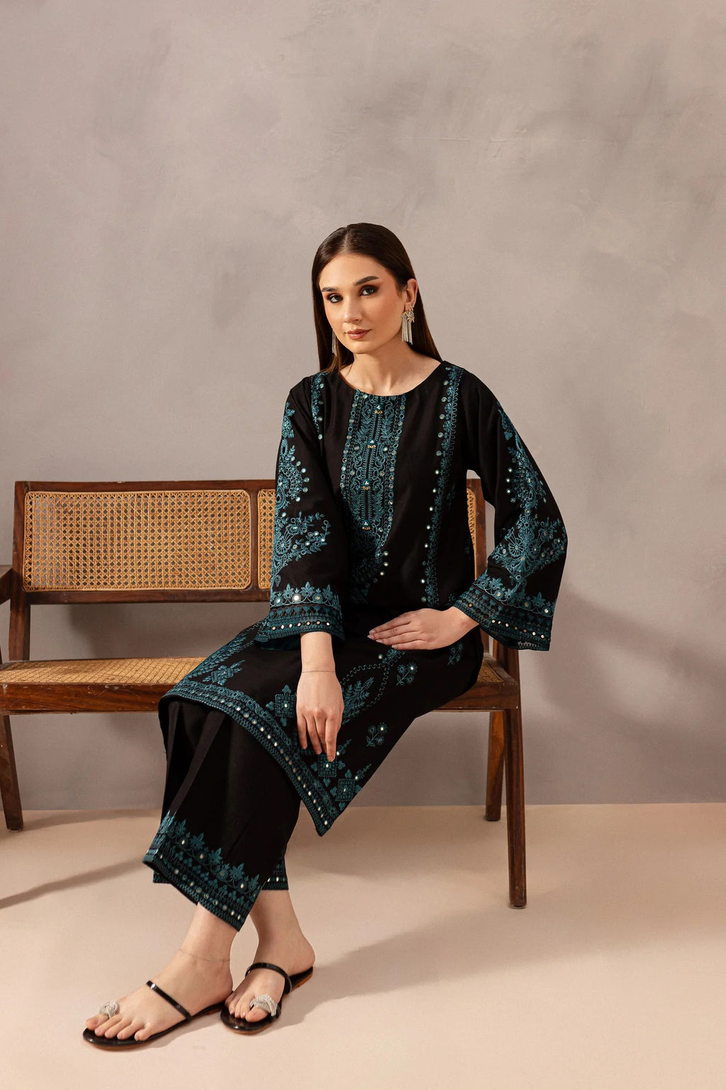 Misha Black 2Pc - Embroidered Winter Cambric Dress
