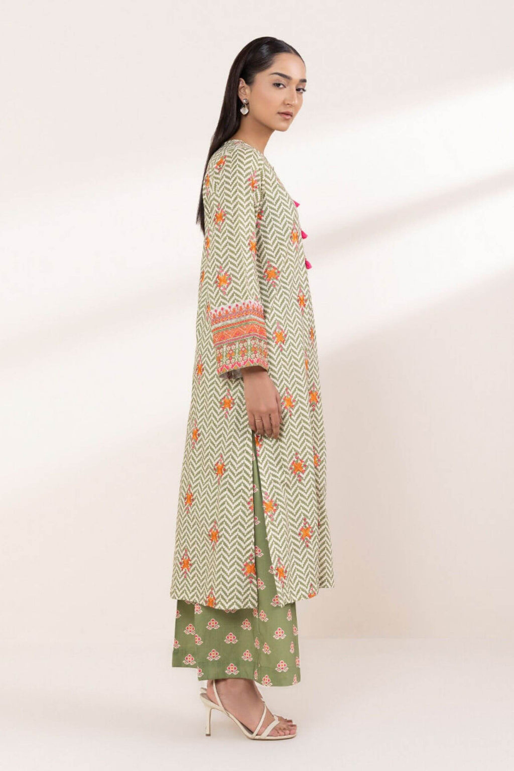 Fabric (Shirt): Digital printed cotton silk with front, back & sleeve embroidery